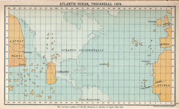 - Toscanelli’s ideeën over de geografie van de Atlantische Oceaan….. Author – Bartholomew, J. G., license Public Domain