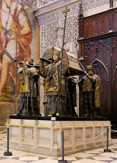 - Het graf van Christoffel Columbus, in de zuidelijke arm….. Author – Sevilla cathedral – tomb of christopher columbus.jpg: Pom² derivative work: Miguel Ángel “fotógrafo”, license CC BY-SA 3.0
