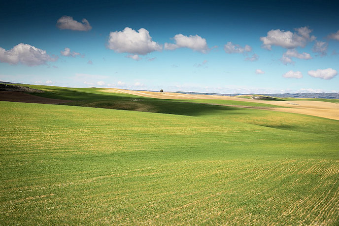 - Het typische landschap van La Mancha hier in de provincie van Cuenca. Author – Paulo Valdivieso, license CC BY-SA 2.0