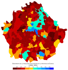 - Bevolkingsgroei per gemeente in de provincie Cuenca tussen (1998-2008). Author – Lanoyta, license CC BY-SA 4.0