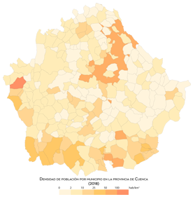 - Bevolkingsdichtheid per gemeente in de provincie Cuenca. Author – Lanoyta, license CC BY-SA 4.0