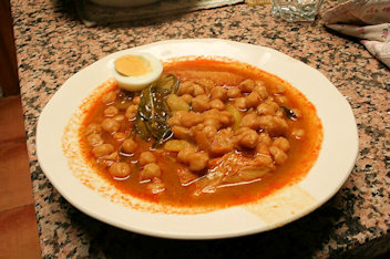 - Potaje de vigilia met kikkererwten en gegarneerd met een hardgekookt ei. Author – , license CC BY 3.0