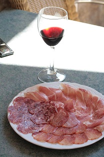 - Vino tinto, rode wijn met een schaal Iberische vleeswaren. Author – RobWinton, licence CC BY-SA 2.0