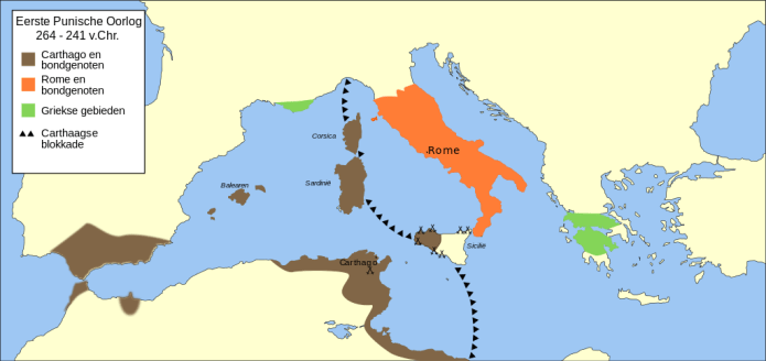 De eerste Punische oorlog (van 265 v.Chr tot 241 v.Chr.)