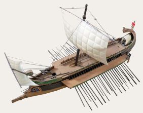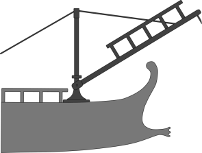 De corvus, de Romeinse uitvinding van de loopplank die men liet zakken nadat men een vijandig schip had geënterd.