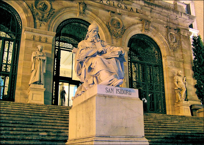 - Standbeeld van Isidoro van Sevilla door José Alcoverro,,,,,. Author – Mr. Tickle, license CC BY-SA 3.0.