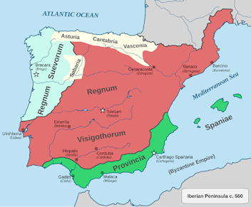- Visigotisch Hispania en de Byzantijnse provincie….. Author – Original uploader was Medievalista, derivative work: Alcides Pinto, license Public Domain