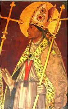 - Geïdealiseerde afbeelding van bisschop Braulio de Zaragoza. Author – Bartolomé Bermejo (1440-1500), license Public Domain