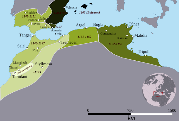 - Het Almohadische Rijk in de late 12e en vroege 13e….. Author – Omar-Toons, derivative work: Rowanwindwhistler, license