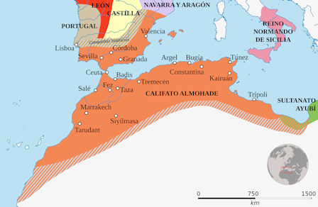 - De situatie van de Almohaden na 1212. Author – Netzach at Polish Wikipedia, license CC BY-SA 3.0