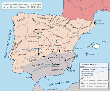 De eerste maatregel van Hannibal, zoon van Amilcar, toen hij de leiding overnam van de Carthaagse bases in Iberië, was het vergroten van zijn territoriale controle. Hij wilde de veroveringen van zijn zwager Hasdrubal en zijn vader consolideren. Tijdens het eerste jaar, 221 v.Chr., onderwierp hij de volkeren in de regio van de Tajo (Taag). Het jaar daarop veroverde hij Helmántica (Salamanca) en Arbucala (Toro), de hoofdstad van de Vacceos. Op de terugweg naar Qart Hadast versloeg hij een coalitie van volkeren uit de Meseta. Dit was op het grondgebied van de Carpetanos. Dit was de zogenaamde slag bij de Taag. Hannibal had ook een broer die Hasdrubal Barkas heette dus houdt dat goed in de gaten als u andere verhalen over deze familie leest.