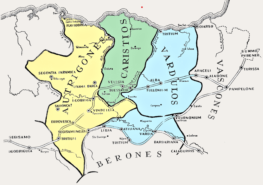 | Tritium Autrigonum (Monasterio de Rodilla); Virovesca (Briviesca); Uxama Barca (Osma de Valdegobia); Deóbriga (vlakbij Miranda de Ebro); Portus Samanun (Castro Urdiales); Antecuia (vlakbij Pancorbo); Salionca (Poza de la Sal); Segisamonculum (Cerezo de Río Tirón). | |