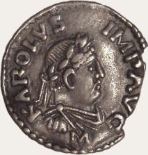 - Een muntje met een afbeelding van Karel de Grote. Author – PHGCOM, licence