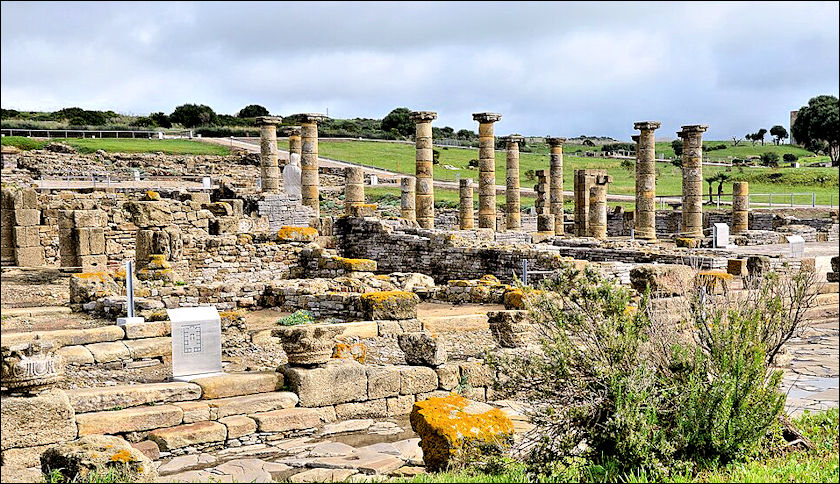 - Overblijfselen van de Romeinse basiliek van Baelo Claudia,,,,. Author – Carole Raddato, license CC BY-SA2.0.