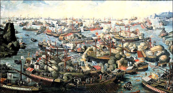 - De Slag bij Lepanto (van een onbekende kunstenaar). Author – Anonymous, license Public Domain