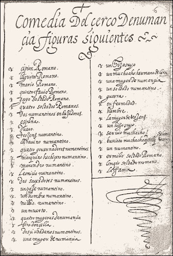 - Eerste bladzijde van de Comedia del çerco de Numancia,,,,. Author – la copia es anónima. El texto es de Miguel de Cervantes, license Public Domain