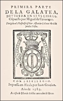 - Omslag van La Galatea (1585), het eerste werk dat Miguel….. Author – Miguel de Cervantes Saavedra, license Public Domain