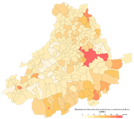 Van de 158.498 inwoners die in 2018 in de provincie zijn geregistreerd, woont ongeveer 36% in de hoofdstad, de stad Ávila. De bevolkingsdichtheid van de provincie, met slechts 19,69 inwoners/km², is veel lager dan het gemiddelde in Spanje dat uitkomt op 92,91 inwoners/km².