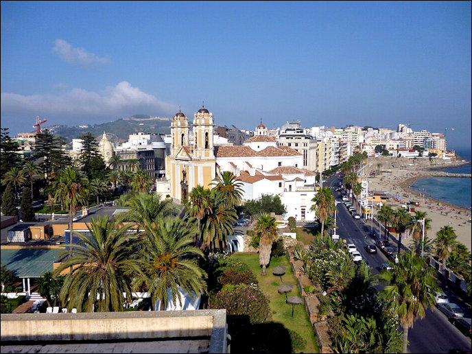 - Een stukje kustlijn van Ceuta, met de kathedraal in het midden. Author – MONUMENTA, license CC BY-SA 4.0