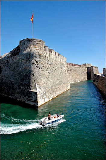 - Murallas Reales y Foso navegable: De Koninklijke stadsmuren en bevaarbare gracht met het Museum van de Koninklijke Stadsmuren. Opvallend is het Plaza de Armas. Het heeft een bevaarbare gracht. Er zijn ook buitenbastions van deze gracht. De binnenste bastions dateren uit de tijd van de Arabische overheersing (711-1415) en zijn later aangepast. Het belangrijkste deel is gebouwd door de Portugezen. Later hebben de Spanjaarden het herbouwd in 1674 en 1705. Tegenwoordig zijn in de Koninklijke Stadsmuren een van de vestigingen van het Stadsmuseum gevestigd. Deze vestiging bevindt zich in het Revellín de San Ignacio. Daarnaast zijn er ondergrondse gangen, die zijn gegraven voor de verdediging van de stad.