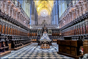 - Het hoogkoor van de kathedraal van Sevilla. Author – Jean-Christophe BENOIST, license CC BY-SA 4.0