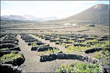 Grenzend aan het natuurpark ligt het gebied van La Geria, een voorbeeld van een perfecte symbiose tussen mens en natuur. In La Geria hebben de boeren van Lanzarote een landbouwsysteem bedacht dat uniek is in de wereld en waarmee zij het land dat door vulkanische as was verbrand, konden bewerken. Deze as, die op de Canarische Eilanden picón wordt genoemd, houdt ’s nachts de vochtigheid vast en filtert deze naar de bodem eronder, terwijl hij deze overdag isoleert. Een onderliggende kalksteenlaag verhindert dat het water doorloopt tot in de ondergrond. Het systeem maakt het mogelijk wijnstokken te telen in een subwoestijnklimaat. Daartoe moesten de boeren op zoek gaan naar de “moederaarde” die onder de lapilli was bedolven, de wijnstokken erin planten, ze bedekken met lagen picón en vulkanische stenen muurtjes bouwen om de wijnstokken te beschermen tegen de sterke winden in de streek. Dit leidde tot een uitzonderlijk landschap, waar de beroemde wijnen van Lanzarote worden geproduceerd, voornamelijk van de Malvasia druif.