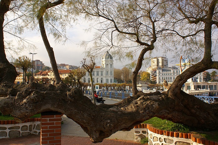 - Paseo de Pereda met op de voorgrond het Palacete del Embarcadero. Author – Tomás Fano, license CC BY-SA 2.0