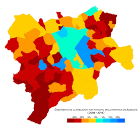 - Bevolkingsgroei per gemeente in de provincie Albacete tussen 2008-2018. Author – Lanoyta, license CC BY-SA 4.0