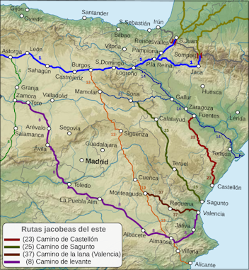 - Caminos de Santiago, ook wel Rutas de Jacobeas, of Jakobusroutes genoemd. Author – Paulusburg, license CC BY-SA 4.0