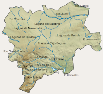 De geografische ligging van de provincie Albacete op het Iberisch schiereiland geeft haar een complexe specificiteit met betrekking tot de watervoorraden. Vanuit hydrologisch oogpunt bevindt zich op het grondgebied van Albacete een belangrijk deel van de bovenloop van vier van de belangrijkste Spaanse stroomgebieden (Guadiana, Guadalquivir, Júcar en Segura).