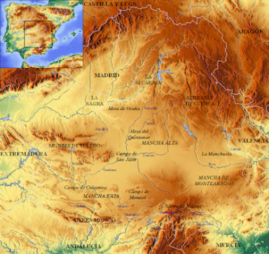 - Fysieke kaart van La Mancha de Montearagón….. Author – Espanish AlB, license CC BY-SA 3.0