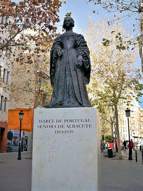 - Standbeeld van Isabella van Portugal in het centrum van Albacete. Author – Siempremolinicos, license CC BY-SA 3.0