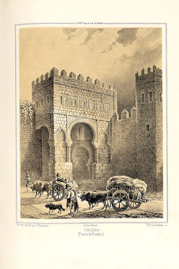 - Puerta de Toledo, in de stad vindt u de overblijfsel van deze,,,,. Author – Francisco Javier Parcerisa (1803–1876), Vicente Urrabieta (1813–1879), license Public Domain