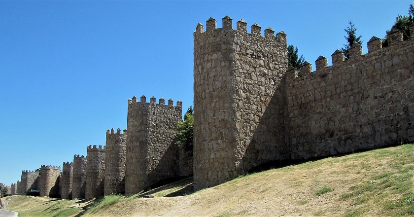 - Murallas de Ávila. De stadsmuren van Ávila. Dit is het belangrijkste monument en het kenmerk van de stad, gebouwd tussen de 11e en 14e eeuw. Het is de best bewaarde volledige muur van Spanje. Met de middeleeuwse werkzaamheden werd in 1090 begonnen. De ommuurde ruimte beslaat 31 ha, heeft een omtrek van ongeveer 2516 m, 88 kubussen of halfronde torens, 2.500 kantelen, muren van 3 meter dik, een gemiddelde hoogte van 12 m en negen poorten. Het is het grootste volledig verlichte monument ter wereld.