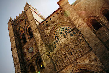 • Catedral del Salvador de Ávila. Ze werd gebouwd tussen de 12e en de 15e eeuw. Ze had een militaire en defensieve functie dankzij de versterkte chevet, waarvan het wapen op de stadsmuur zelf is aangebracht. Ze werd aanvankelijk in romaanse stijl gebouwd door meester Fruchel. In het begin van de 13e eeuw werden de werken in gotische stijl uitgevoerd. Meester Fruchel begon met de werkzaamheden geïnspireerd op de basiliek van Saint-Denis. Tijdens het eerste derde deel van de 14e eeuw reactiveerde bisschop Sancho Blázquez Dávila de werkzaamheden aan de kathedraal. Het is een van de gebouwen die de penetratie van de Franse gotiek op het schiereiland inluidden en wordt beschouwd als de eerste gotische kathedraal in Spanje. De kathedraal heeft een Latijns kruisplan, met drie beuken, transept en kooromgang. De hoofdkapel, met twee traveeën en een apsis, is overdekt door een ribbengewelf en heeft twee niveaus met ramen. De kathedraal heeft een monumentaal hoofdaltaarstuk, dat Pedro Berruguete in 1499 tot aan zijn dood begon te schilderen, met medewerking van Juan de Borgoña. De kruisgang is verbonden met het transept door een 14de- en 15de-eeuwse deur aan de zuidkant van de kathedraal. Het transept van de kathedraal is gebeeldhouwd in kalksteen en stelt zeven scènes uit het leven van Jezus voor. Het werd gemaakt door Juan Rodríguez en Lucas Giraldo, beiden leerlingen van Vasco de la Zarza, in de periode tussen 1531 en 1536-1544.