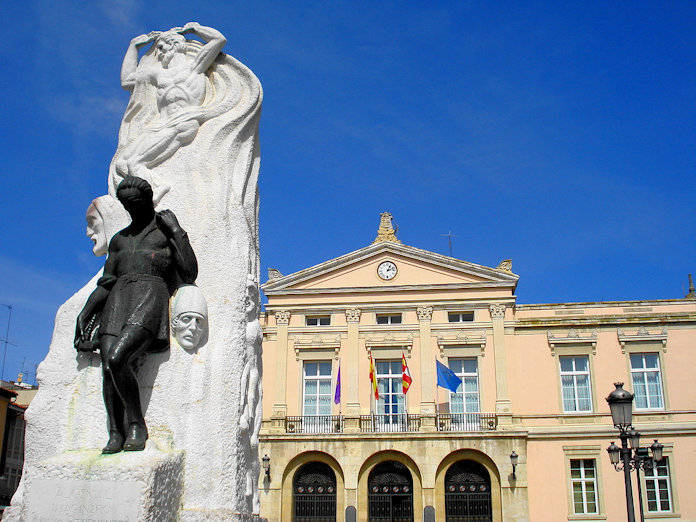 - Monument voor Alonso Berruguete; op de achtergrond het stadhuis van de hoofdstad. Author – CParísC, licence Public Domain