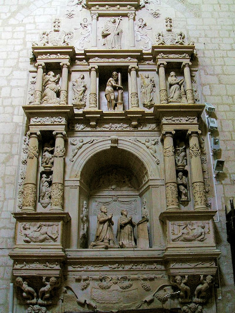 - De trascoro (koorsluiting), een uitstekend werk van flamboyante gotiek, met een Vlaamse drieluik (triptiek) van de meester Jan Joest.