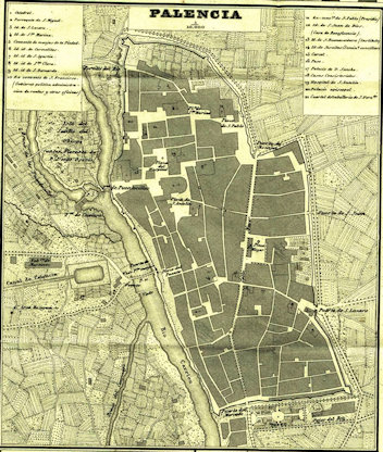 - Algemeen beeld van Palencia op een tekening uit 1885. Author – José Passos (1862–1928), licence Public Domain