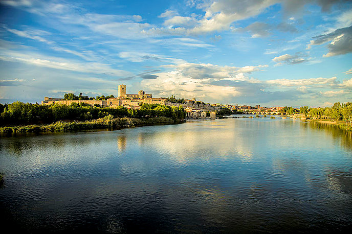 Wijds uitzicht over de rivier de Duero met op de achtergrond de stad Zamora.