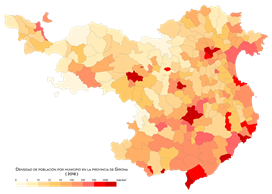 - De bevolkingsdichtheid per gemeente van de provincie Gerona (2018). Author – Lanoyta, license CC BY-SA 4.0