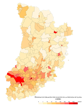 - Bevolkingsdichtheid van de provincie Lérida. Author – Lanoyta, license CC BY-SA 4.0
