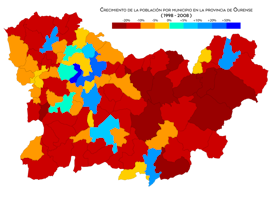Bevolkingsgroei van de provincie Orense tussen 1998 en 2008