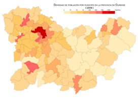 Bevolkingsdichtheid van de provincie Orense.
