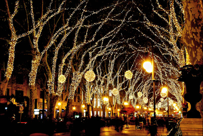 - De versierde straten van Palma de Mallorca tijdens de kerst. Author – Travelinho, license CC BY-SA 4.0