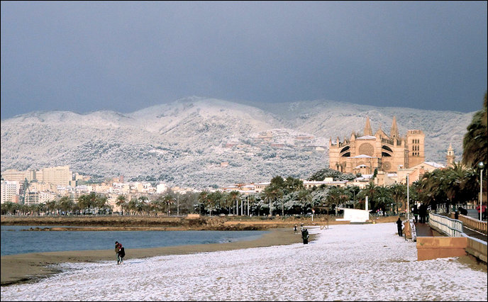 - Zware sneeuwval zoals hier in 2012 is zeldzaam in Mallorca. Author – , license CC BY-SA 3.0