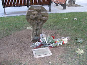 - Bronzen gedenkzuil voor Germán Rodríguez en de gebeurtenissen van de Sanfermines van 1978. Author – Jorab, license CC BY 3.0