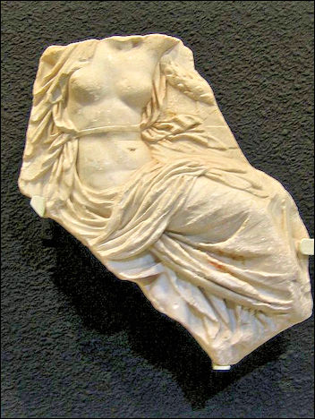 - Gebeeldhouwd bas-reliëf van Rhea Silvia (Griekse godin,,,,. Author – Nanosanchez, license Public Domain.