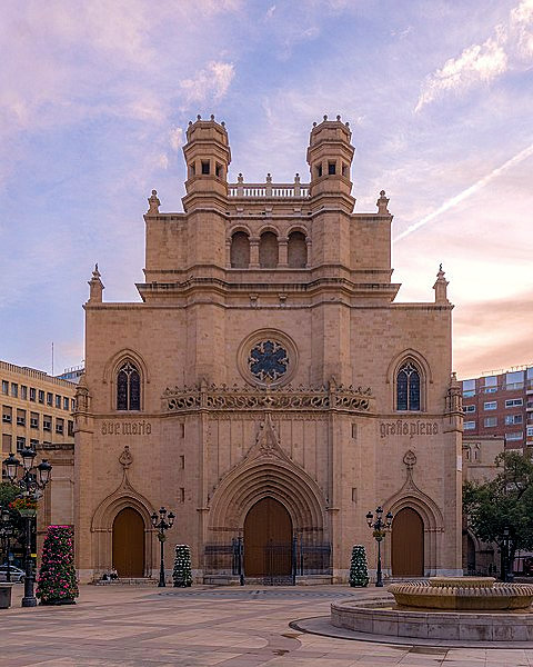 Concatedral de Santa María (Co-kathedraal van Santa María): De eerste kerk werd gebouwd aan het einde van de 13e eeuw, maar werd verwoest door brand. In het midden van de 14e eeuw werd begonnen met de bouw van de nieuwe kerk, die in 1936 werd afgebroken. In 1940, met een project van Vicente Traver Tomás, in neogotische stijl, omdat hij geïnspireerd was door de sporen van de verdwenen kerk, begon de bouw van de nieuwe kerk. De huidige kerk beslaat een heel blok naast de parochiegebouwen, de huisvesting van de geestelijken en de gebouwen van de kathedraal. Het heeft een Latijns kruisplan met drie schepen. Het dwarsschip is bekroond met een koepel en het koor heeft een vijfhoekige apsis. De hoofdbeuken zijn overdekt met ribgewelven. De kathedraal werd voltooid in 2009, met de toevoeging van het klooster, de kapittelzaal, de archieven en het museum.