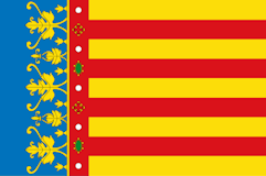 De vlag van Valencia, ook wel ‘Real Señera‘, ‘Sereña Coronada’, of de ‘Señera tricolor’ genoemd, is dezelfde vlag als die van de Comunidad Valenciana. De vlag is ontstaan uit een heraldisch schild, dat ontwikkeld naar de vorm van een vlag met de kroon van Aragón met in het verlengde daarvan de balken van de koningen van de Kroon van Aragon. Dus, nu zien we dat de vlag van Valencia is ontstaan uit de traditionele “Señera”, bestaande uit vier rode balken op een gele achtergrond, met de kroon op een verticale blauwe baan langs de vlaggenmast.