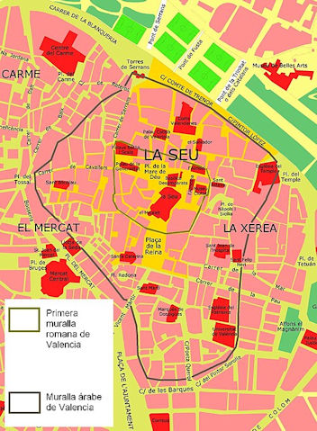 Valencia is één van Spanje’s oudste steden, het werd in het jaar 138 v. C. (de tijd van consul Décimus Junius Brutus Galaicus) opgericht door een tweeduizend tal Romeinse kolonisten die het Valentia Edetanorum noemde. In zijn tijd was het een Klassiek Romeinse stad omdat het op een strategische plek, dichtbij de zee was gelegen, het was een eiland in de rivier dat doorkruist werd door de Vía Augusta, die de Romeinse provincie Bética (Andalucía) met de hoofdstad van het Romeinse Rijk, Rome verbond. De kern van de stad was gelegen in de buurt van het huidige Plaza de la Virgen. Hier bevond zich het Forum en kruiste het Cardo en het Decumano (twee termen die gebruikt werden in de stedelijke planning van de Romeinse Rijk), dat waren en zijn nog steeds de twee hoofdassen van de stad. Het Cardo correspondeert met de huidige Carrer del Salvador en Plaça de l’Almoina en het Decumano met de Carrer dels Cavallers.